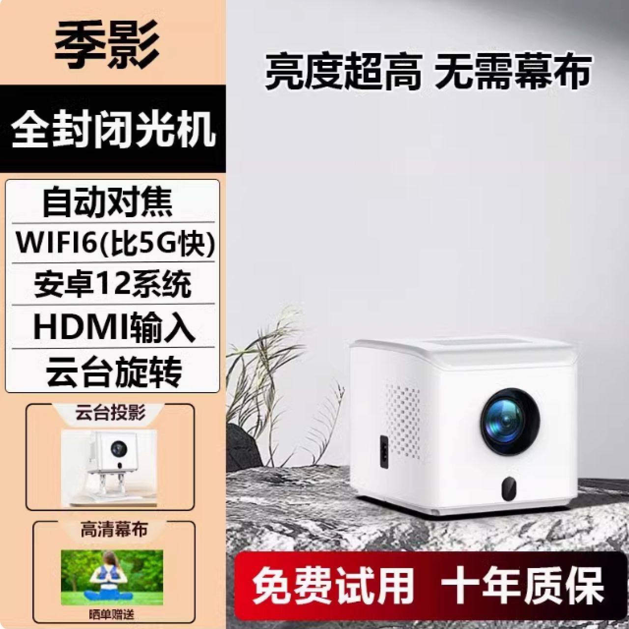 季影2025新款超高清投影仪家用电视卧室客厅家庭影院